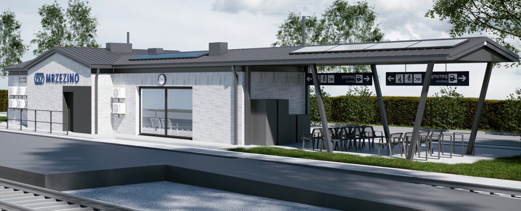 As part of the railway station project in Mrzezino, Everest 5 was responsible for the comprehensive execution of electrical and telecommunications installations. The works included the installation of trays and cable routes, earthing and lightning protection systems, switchboards, lighting fixtures, and accessories, ensuring appropriate power infrastructure and comfortable lighting conditions at the station. Power for the switchboards and circuits was supplied from the main switchgear (RG), and the installed photovoltaic system introduced eco-friendly solutions, supporting the sustainable development of the facility. External electrical installations were also carried out, including outdoor lighting and power supply for other facilities within the station grounds. As for telecommunications installations, structured cabling was implemented to ensure reliable data transmission throughout the facility. The installed systems such as CCTV, access control with a keyless railway station locking system (ACS BSZD), entrance intercom, clock system, toilet call system, intrusion and hold-up alarm system (I&HAS), physical security information management (PSIM), dynamic passenger information, public address system, and building management system (BMS) formed integrated solutions ensuring both the safety and convenience of station users. These systems enable effective space management, passenger safety monitoring, and provide passengers with up-to-date timetable information and other relevant announcements.